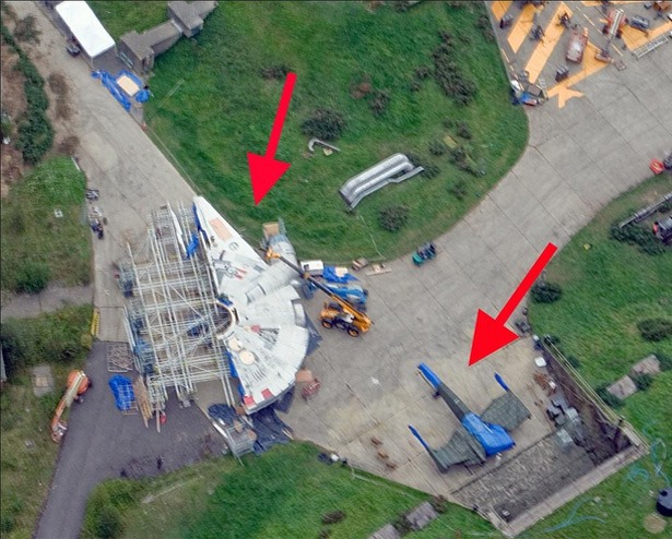 Waar de Star Wars producenten angst voor hadden werd werkelijkheid. De eerste beelden van boven de Pinewood Studios gemaakt met een drone zijn opgedoken. Op de beelden zijn meerdere ruimteschepen uit de films te zien waaronder een half afgemaakte Millenium Falcon en twee X-Wing fighters. .