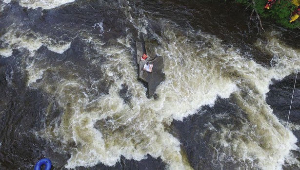 Brandweercommandant Roma bleek per toeval een drone in zijn auto te hebben liggen en heeft deze dan ook meteen ingezet. "The drone just happened to be in my vehicle and it was one of those times where the application fit the moment." Daaraan voegt hij toe dat het voor de brandweer prioriteit had om de oudere knul van een reddingsvest te voorzien, voor het geval hij in het water zou glijden, "Our first priority was getting the older boy a life jacket in case he slipped into the water". De jongere jongen was al voorzien van een reddingsvest en hij zou eerst door de reddingswerkers uit zijn benarde situatie worden gehaald. De nood van het vest voor de oudere jongen was dus hoog, aangezien hij in de tussentijd nog van de rots af zo kunnen glijden. rivier2