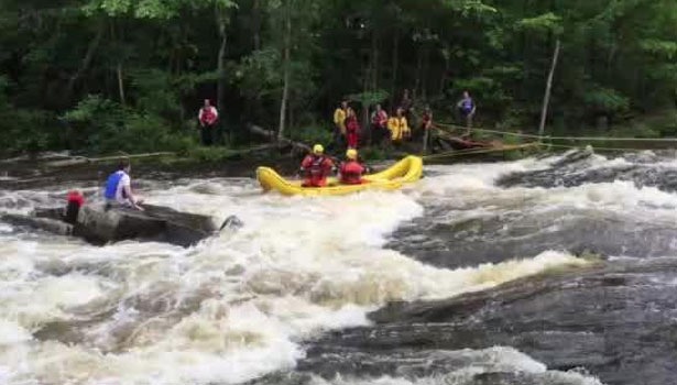 De twee Amerikaanse jongens waren aan het varen met een opblaasbare band op de Little Androscoggin River in Mechanic Falls, Maine, tot deze omsloeg. De tiener en een jongere jongen werden overvallen door de sterke stroming en strandde vervolgens op een rots, in het midden van de rivier. De brandweer moest eraan te pas komen om het duo te kunnen redden. rivier1