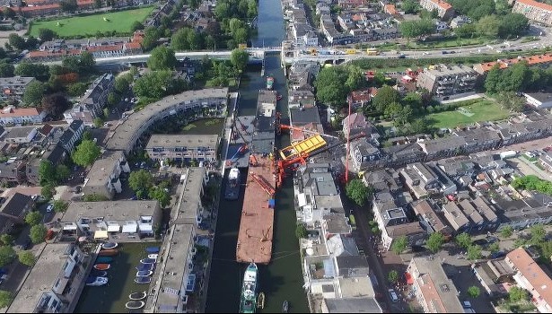Het ongeval waarbij 2 bouwkranen en een brugdeel eerder deze week in Alphen aan de Rijn omvielen, wordt onderzocht met een drone.